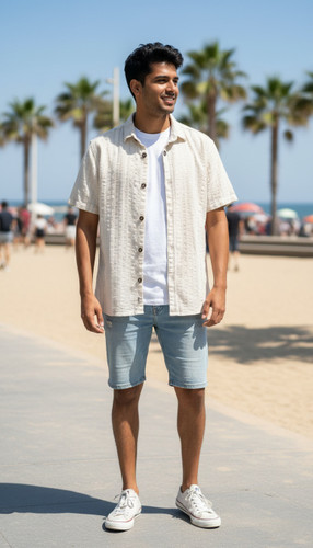 پیراهن آستین کوتاه نخی کتان سفید برند Catch