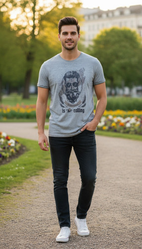 تی شرت آستین کوتاه نخی طوسی برند Jooti Jeans
