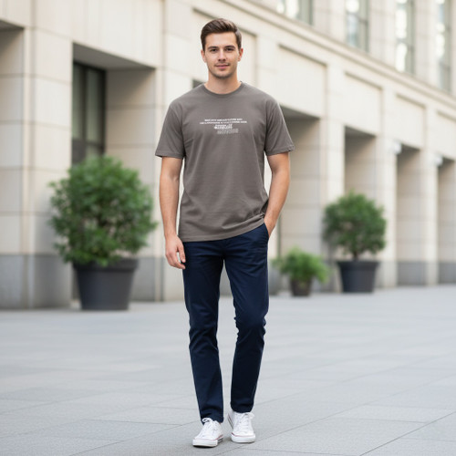 تی شرت آستین کوتاه نخی طرحدار طوسی برند Gunay