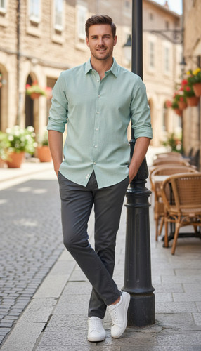 پیراهن آستین بلند سبز کمرنگ برند C&A اصل