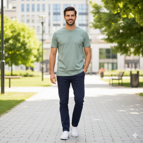 تی شرت آستین کوتاه نخی سبز اطلسی لیبل کات