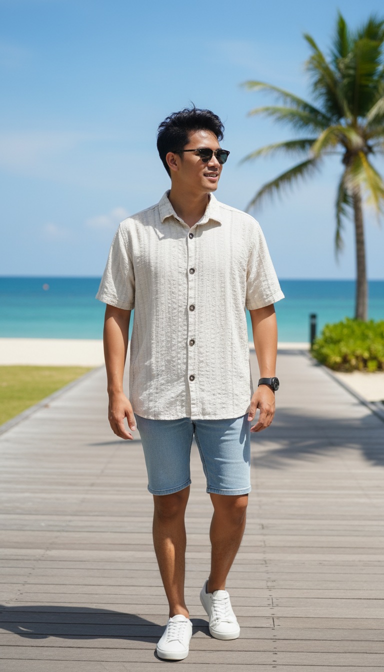 پیراهن آستین کوتاه نخی کتان سفید برند Catch