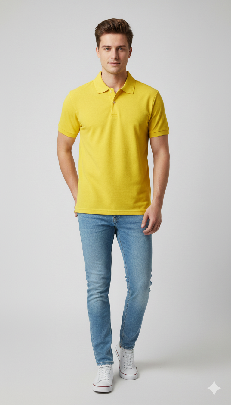 تی شرت آستین کوتاه نخی زرد بدند Poshka