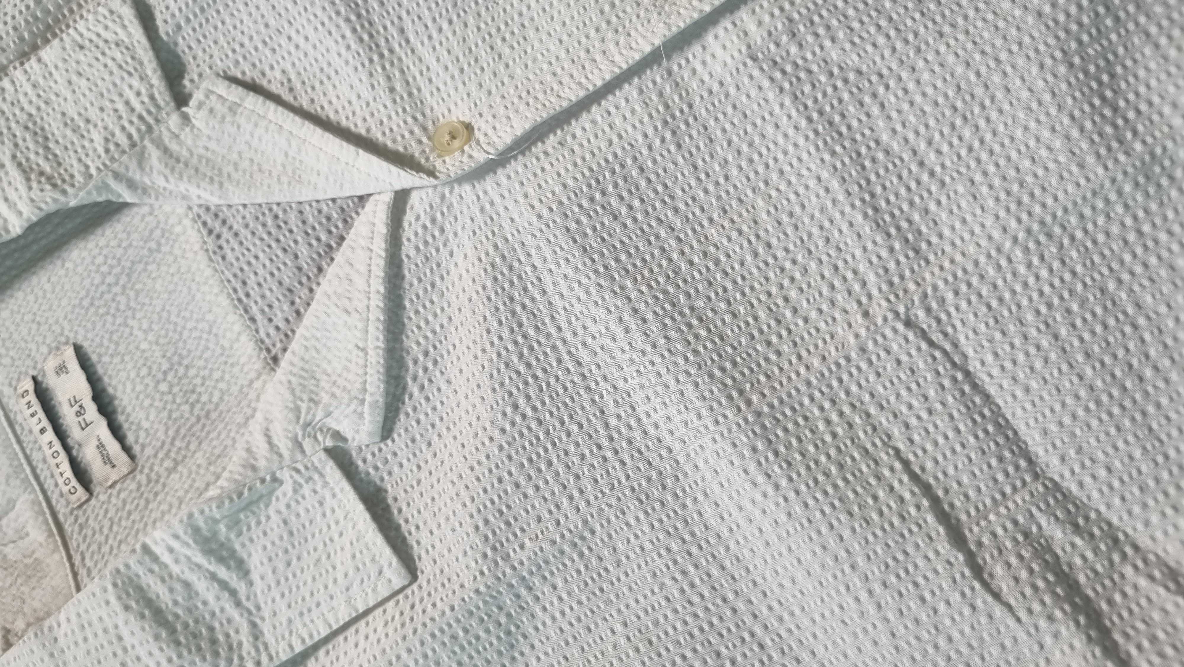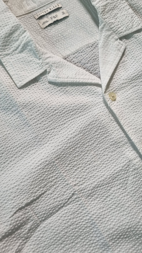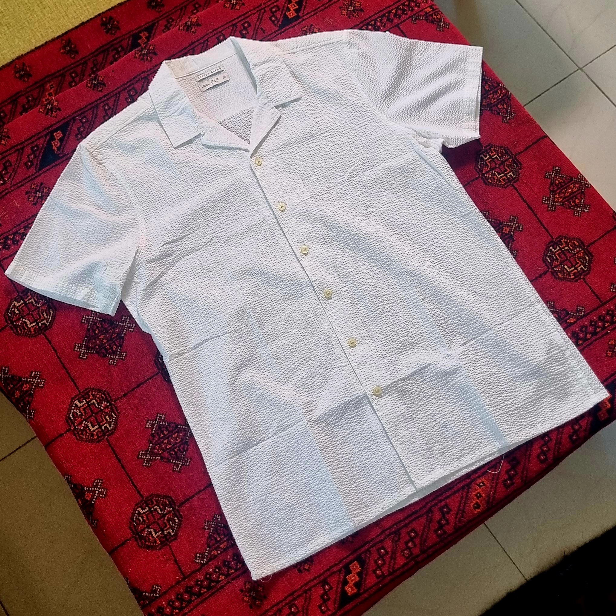 - رنگ و جزئیات: رنگ سفید خالص به همراه دکمههای ساده و روشن، بر حس تمیزی و خنکی آن تأکید دارد. تگ برند (F&F - Cotton Blend) نیز کیفیت پارچه را تضمین میکند.