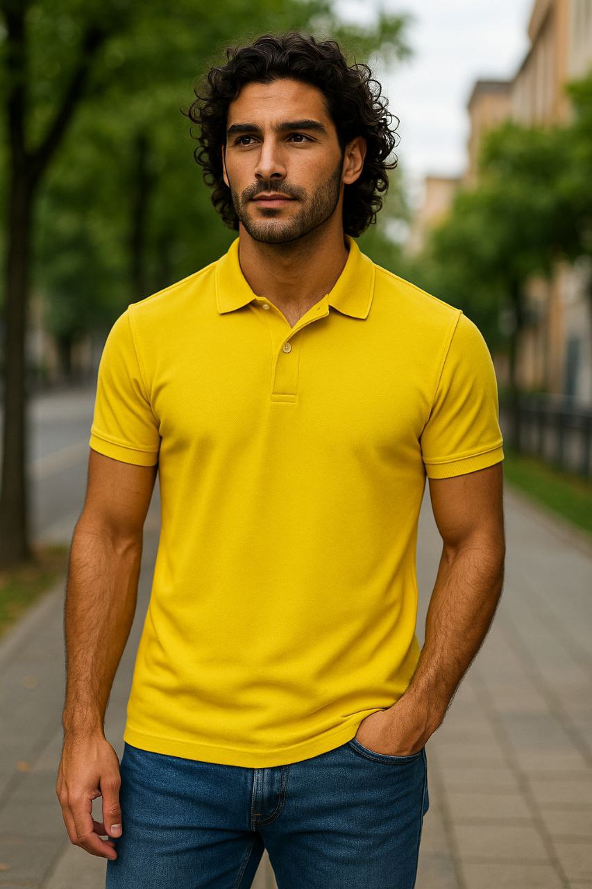 تی شرت آستین کوتاه نخی زرد بدند Poshka