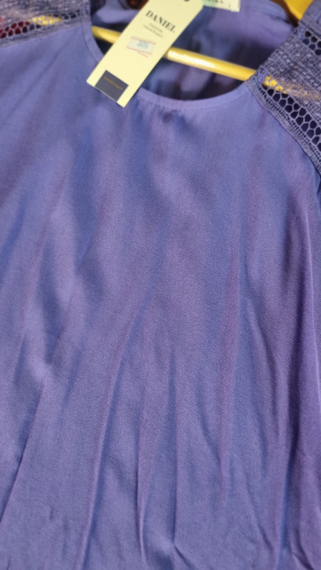 تاپ مجلسی زنانه بنفش **Flat** با جزئیات **گیپور** – برند Daniel
