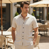پیراهن آستین کوتاه راه راه کرم و قهوه ای برند Catch